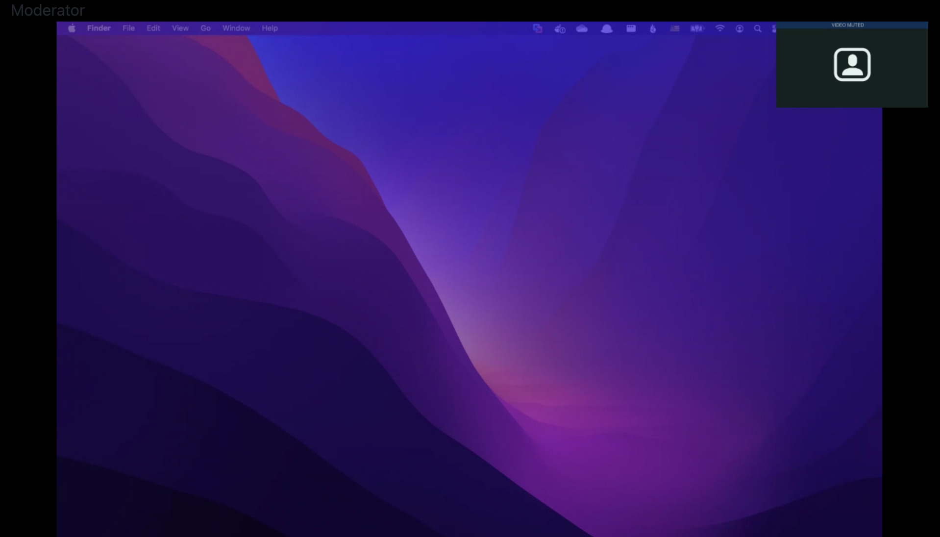 By default, the shared screen will take full-screen role, and a participant will be shown in the top-right corner of the video. For example: